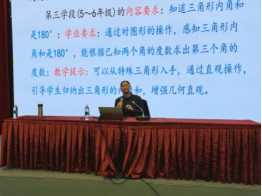 赵教授以三角形内角和定理为例,从课程标准要求、教材分析 、学情分析、教学目标、教学过程、教学反思六个方面展开。在课程标准的解读上,赵教授解读了不同学段对证明的要求;教材分析中,着重分析了本节内容在教材中的地位与作用及目标的确定;学情分析中,强调基于员工的知识储备、认知经验、学习困难等实施教学;三维目标的确定围绕史宁中教授提出的“三会”进行;教学过程中结合三角形内角和定理详细阐述,环节完整。