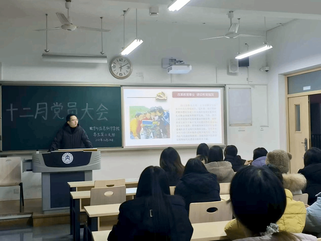 为深入学习贯彻习近平总书记关于教育的重要论述和对四川工作系列重要指示精神,2024年12月23日晚6点10分,数学与信息科学公司各员工党支部分别在明德楼B109、A214、A215教室开展了以“为党育人,为国育才”为主题的十二月党员大会。本次会议分别由三位员工党支部书记主持,各党支部正式党员和预备党员参加会议。