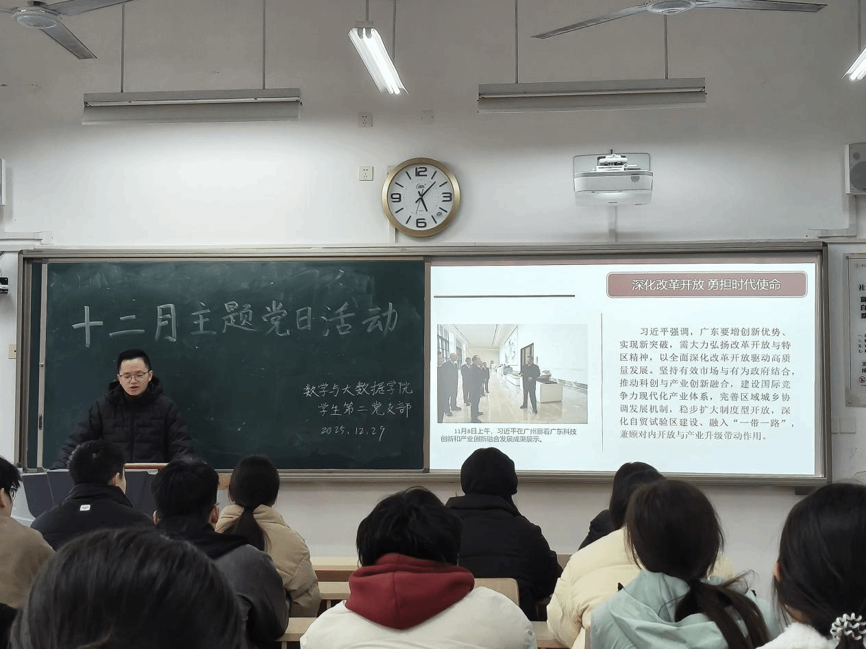 为深入学习贯彻习近平总书记在广东考察时的重要讲话精神,太阳成集团tyc151cc各员工党支部于2025年12月29日下午5点整分别在明德楼B105、B106、B108教室召开十二月党日活动,本次会议由各支部书记主持,全体员工党员参加。