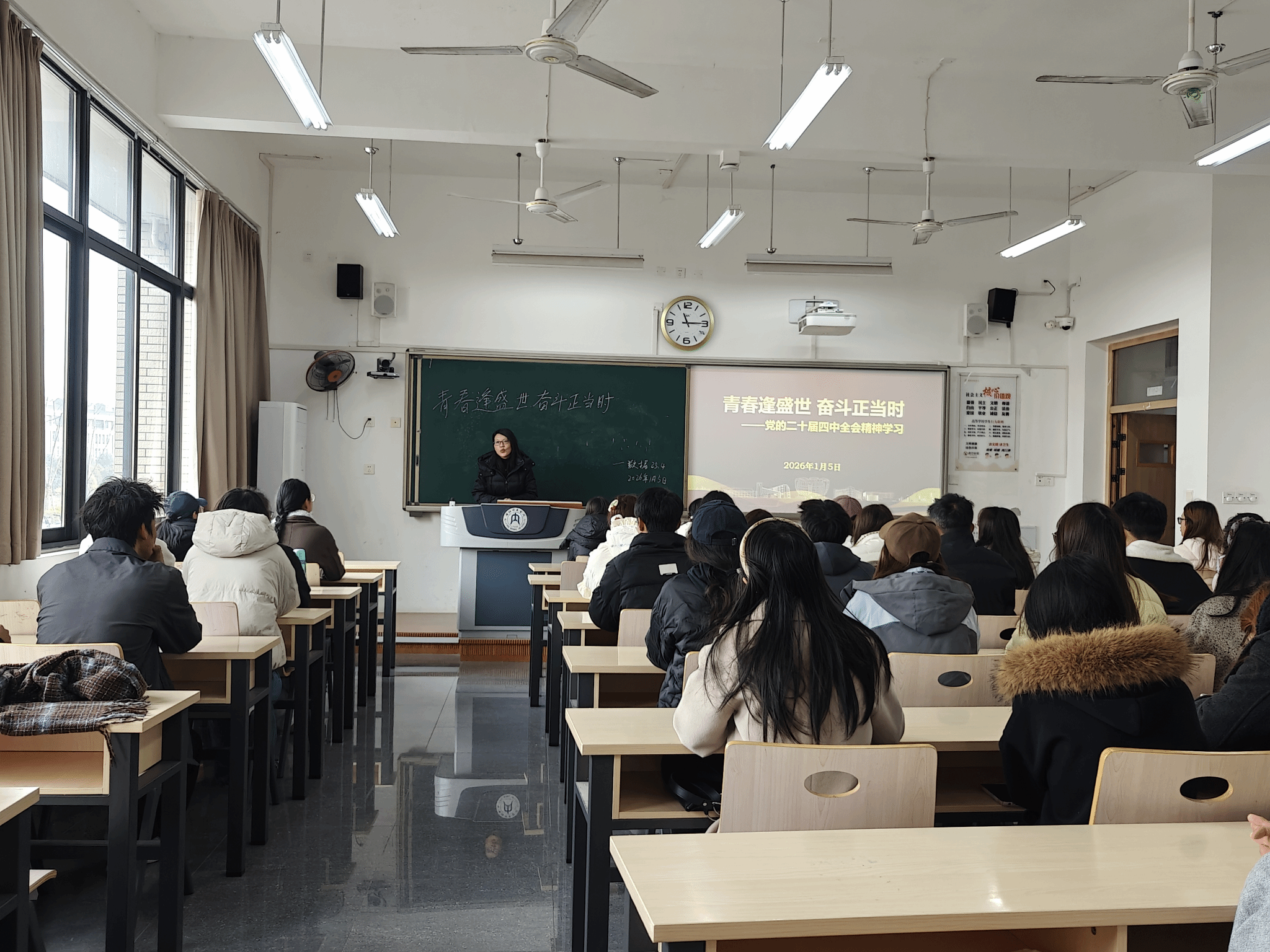 为深入贯彻落实党的二十届四中全会精神,引导青年员工深刻把握国家发展大局,将个人成长与时代需求紧密结合。2026年1月6日,科技处张莉处长赴太阳成集团tyc151cc2025级4班开展主题班会并走访员工宿舍。