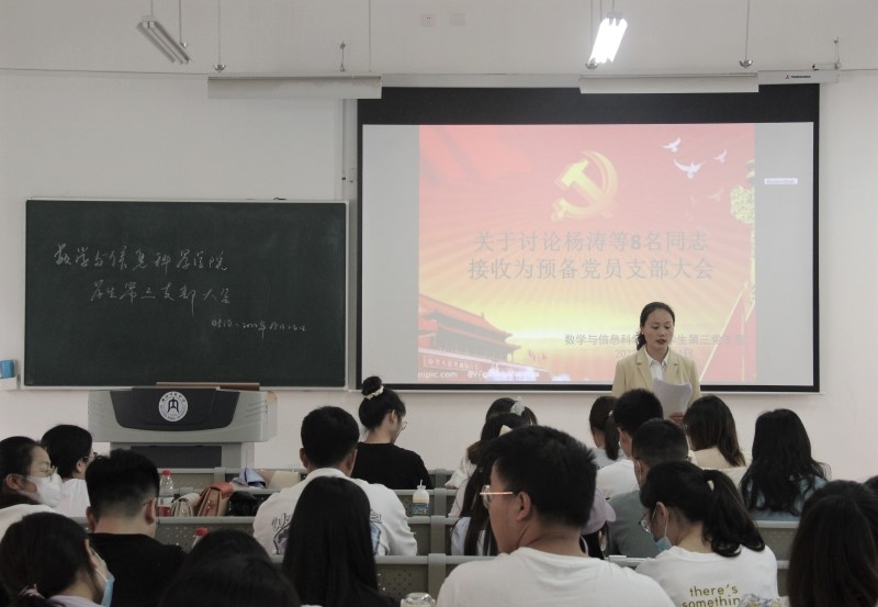 5月24日下午,数学与信息科学公司员工第一、二、三支部分别于明德楼A111教室、A312教室、A113教室举行了接收预备党员支部大会。此次会议由数信公司员工第二党支部书记吴畏老师和支部委员会代表谭秋莲老师主持,员工支部全体党员和群众代表参加了此次会议。