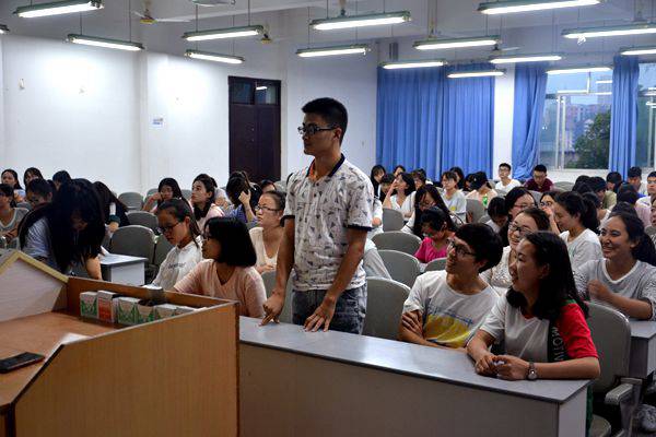 晚上七点整,本次“防汛抗旱知识大赛”主题班会在雷鸣般的掌声中正式开始。首先,由2班班长杨振致开幕词。随后,主持人刘兴红带领大家进入知识竞猜环节。这次知识竞赛活动的特殊之处在于参赛人员的选择方法,主持人将“击鼓传花”的游戏灵活地运用其中。由主持人敲击黑板,全体同学不停抛纸球,最后敲击声停止时,纸球在谁手中谁就获得参赛资格,最后选出了伍梅等六位参赛同学。班委通过这种新颖的方法,调动了全体同学的积极性,做到了全员参与。