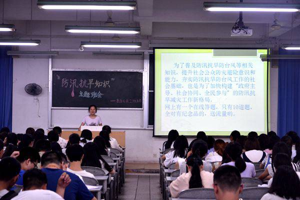 为了普及防汛抗旱防台风等相关安全知识,提升老员工防灾避险意识和能力,夯实防汛抗旱防台风工作的社会基础,同时,为了加快构建“政府主导、社会协同、全民参与”的防汛抗旱减灾工作新格局,数学与信息科学公司2016级2班全体员工于5月30日在五教南201教室举办了“防汛抗旱知识大赛”主题班会。与会嘉宾有2016级2班班主任秦海燕老师。