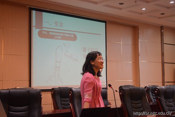 9点40分,另一位讲师赖红教授开始进行讲学,她曾在2015年获得了澳洲麦考瑞大学和北京邮电大学双博士学位。她开篇就直接提出人生有很多的不确定性,并分享了自己的考研考博经验,希望以此来鼓励大家能够以良好的心态去面对所有的困难。在讲学过程中,她着重强调了量子科学实验卫星“量子号”的发射成功以及量子信息的特性等专业知识,并且具体解释了量子信息与经典信息的根本区别。