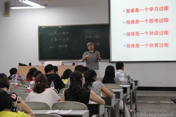 王教授首先给出了观课议课的定义:观课议课是参与者相互提供教学信息, 共同收集和感受课堂信息, 在充分拥有信息的基础上, 围绕共同关心的问题进行对话和反思, 以改进课堂教学、促进教师专业发展的一种研修活动。接下来王教授从三个大的方面对怎样评数学课进行了分析,主要包括:一、观课的意义;二、观课的方法;三、观课的注意事项。在为国培学员讲解观课的意义时,王教授给出了自己独到的观点,他认为观课不仅是一个学习的过程;还是一个思考的过程;更是一个对话与欣赏的过程,而这些过程最终都指向员工的发展。