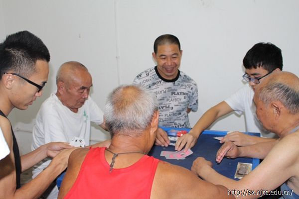 老人们一直给志愿者们道谢,脸上也洋溢着笑容,每位队员都倍受鼓舞。由于一些老人较孤僻,志愿者们决定陪伴老人们玩耍。与此同时,另一批志愿者来到了老人们的活动室,在征得老人们的同意后,加入老人们,并陪他们一起打扑克牌,在牌桌上老人们也不再受年龄的拘束,大家开怀大笑地玩起来。志愿者们和老人亲切的交谈,仿佛认识多年的老友一样,棋牌室里传来老人与志愿者们的阵阵欢笑声。