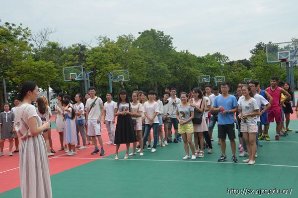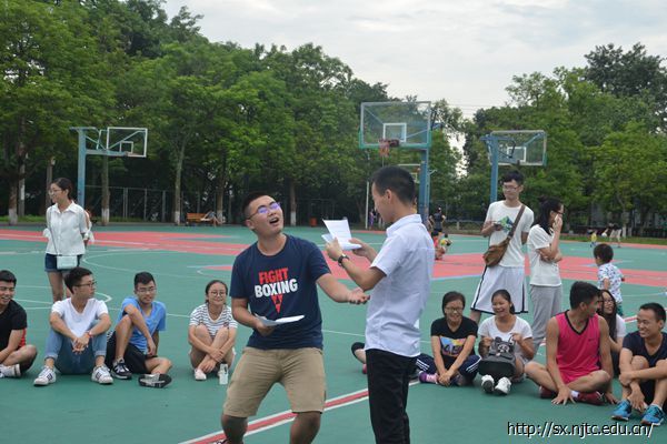 此次欢送会以篮球赛的形式进行,在篮球比赛中场休息期间,大家通过玩一系列的游戏来欢送第十五届团学的师兄师姐,也借此增进第十六届团学之间的友情。热爱篮球的团学成员不管男女都上场一展身手。大家在球场上互不相让,你来我往,势必要为自己所在的队伍赢得胜利。第一场篮球赛结束后的休息期间,大家聚在一起玩“谁是大影帝”游戏,游戏规定每个部门选出了2个人来参加这个游戏,通过抽签抽出需表演的版本,同一份台词,大家却表演出了撕心裂肺版、琼瑶版、狂喜版、自恋版等5个版本,每个版本都让大家捧腹大笑。