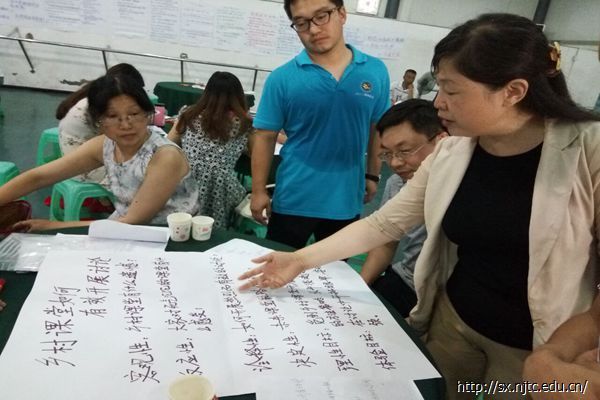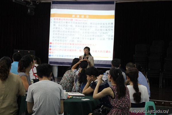 10日下午,在上午学习的基础上,培训师给出一个ORID焦点讨论法运用于班级建设的例子,然后让学员将ORID焦点讨论法运用在自己的教学中,让小组讨论确定一个案例并对该案例做详细准备包括理性目标、体验目标、问题准备等,并要求小组写在纸上与其他学员交流。学员们积极参加讨论,给出了自己的想法。其中,熊承燕老师将ORID焦点讨论法运用于开放性数学问题的解决和数学概念的学习两个方面。
