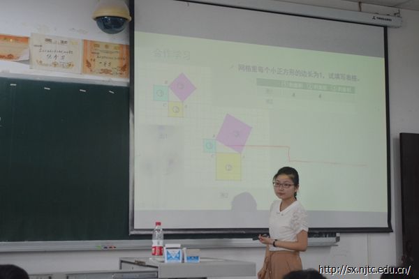 本次会议采用试讲———点评的方式进行在五教302,第一位试讲的本科生郑秀平试讲题目是勾股定律,这节课是初中教学的一个重点,同时也是一个难点。虽然本节课比较难讲,但是她从容不迫地讲完了整节课,赢得了大家的掌声。与此同时,在座的老师对她的这次课也提出了一些意见,希望她能公式洁简化,内容创新化,教学工具一定要准确。此外,国培学员们对唐俊、张福容、魏月丽、陈华等17名同学的试讲进行了指导。