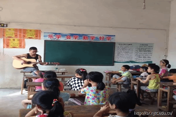 会吉他、爱唱歌的蔡科峰每天背着吉他上下山教孩子们音乐,中午为了不让不睡午觉的孩子打扰到其他人,更是牺牲自己的午睡时间陪着他们玩耍。这也让他与小朋友们建立起深厚的感情。“你不要走”这是在他们即将离开时一位名叫吴伟的小朋友对他们的挽留。这样一句平淡的话却重重的敲打在蔡科峰的心上,这是最真挚的挽留,这是最纯真的挽留,他用自己的歌声传递着志愿者们这一份最纯真的关爱,他用歌声来维系着“你我”之间那一份温存。孩子们对音乐的渴望也是成了对他义务支教活动最大的肯定。
