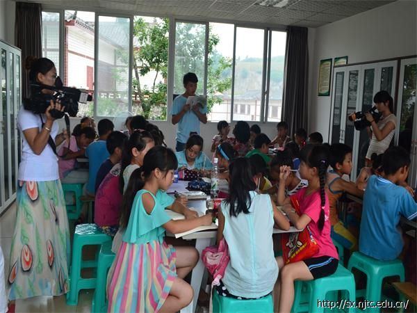 今天下午3点,正逢上课时间,内江电视台、新闻网的记者来到了平安寨,在银山镇产业园区党委书记郑桂华的带领下,看望了党员对口帮扶队的志愿者们和孩子们。记者随同郑桂华书记在室内先后参观了四年级手工课,五年级的语文课、六年级的数学课,并拍摄了孩子们做手工品、听课的场景。下课后,记者采访了六年级的苏毅问道“在这儿,你学到了什么?你认为这种活动好吗?”等问题,孩子略显羞涩的回答道“在这儿,我交到了很多朋友,学到了在公司没学到的的东西,比如手工、健美操、武术等,喜欢他们这种支教活动。”接着第二节上课了,记者在户外又观看了一年级《感恩的心》的手语课,三年级的《小苹果》舞蹈课,五年级健美操课并拍摄孩子跳舞的场景,随后记者又采访了家长关我队志愿者李约翰关于我队的相关问题,当问及到“是否习惯支教生活”时,李约回答到“相比于很多三下乡团队,其实我们这的条件已经不错了,我很享受这儿的时光,在这能学到很多东西。”紧接着,记者又参观我队志愿者厨房宿舍。下午4点,记者离开了平安寨村时,我队对记者们的到来表达了感谢。