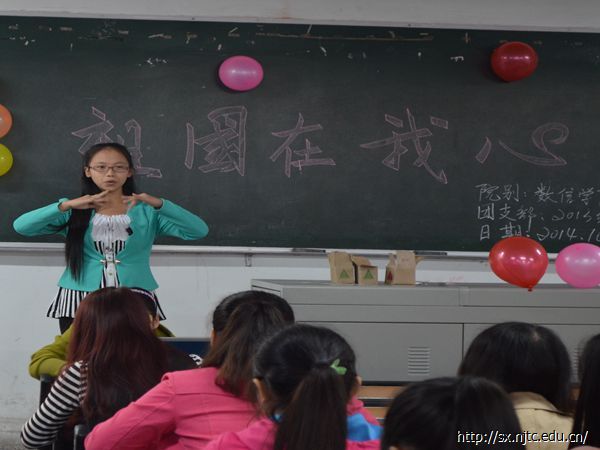 活动开始前,同学们就积极的装扮教室,让我们感觉到了像节日一样的气氛。在大家的期待中,活动终于拉开了帷幕。首先,主持人以简洁的语言介绍了本次活动的主题。接着,由夏菊婷同学为大家表演了手语舞《国家》,每一个动作都诠释着对国家的热爱。紧接着,由陈晓欣、郑秀平等四位同学为大家朗诵《祖国,我心中的一首歌》,铿锵有力的声音,将每一个字都读进听者的心,更是将同学们带进了一种慷慨激昂的气氛中。这时班长黄娟以一首彝族歌曲获得全场欢呼。接下来,终于轮到了男生出场,一曲《精忠报国》,带着绝对的霸气,将气氛推向高潮。最后,主持人组织同学们玩关于爱国的小游戏,并且要颁发奖品给获胜同学,听到此,同学们都跃跃欲试,全场气氛达到白热化的阶段,最终一位女同学获胜。最后,班长带领大家合唱了一首《五星红旗》,前任班长胡生兵代表班长发言,对这次团组织生活会做了总结。