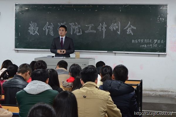 12月3日中午12点30分,数信公司团学第五次工作例会在一教205展开。出席此次例会的有数信公司辅导员吴畏老师,团总支副书记陈小睿、员工会主席林忠福、副主席胡静、副主席杨春雷、各班班委、各部门负责人及干事。本次会议由宿管部干事邹莉主持。