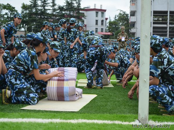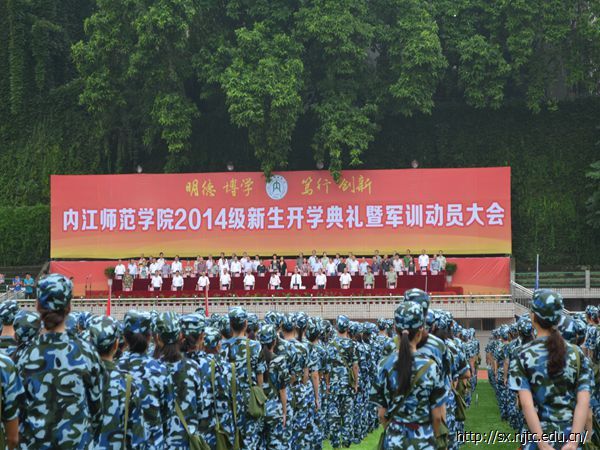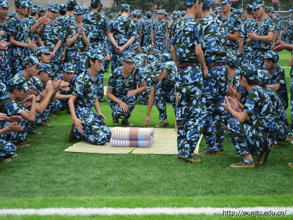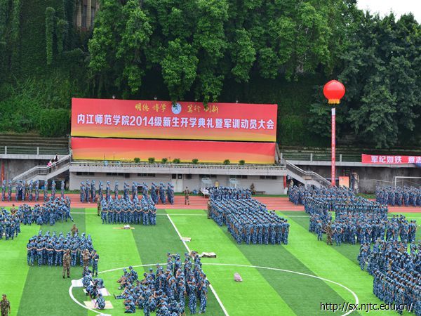 上午8点半,所有新生穿着整齐的迷彩军服来到田径场参加2014级新生开学典礼暨动员大会。动员大会结束后,新生们开始分连队,连队分好后,教官带着各自的连队到达指定的训练场地,大学的第一堂课军训也正式拉开帷幕。“一二一”,教官的口令声在整个田径场久久回荡,新生们也饱含激情,以朝气蓬勃面貌迎接他们大学的第一堂课。站军姿、原地踏步、抱臂、齐步走,同学们精神抖擞,带着热情积极训练。下午,新生们学习整理内务,叠“豆腐块”便是他们今下午学习的主要内容,当一床床被子教官手里变成整齐的“豆腐块”时,大家都欢呼起来,并跃跃欲试了。晚上七点半,一阵阵嘹亮的军歌从田径场向四面八方飘来。同学们在教官的带领下认真学习军歌