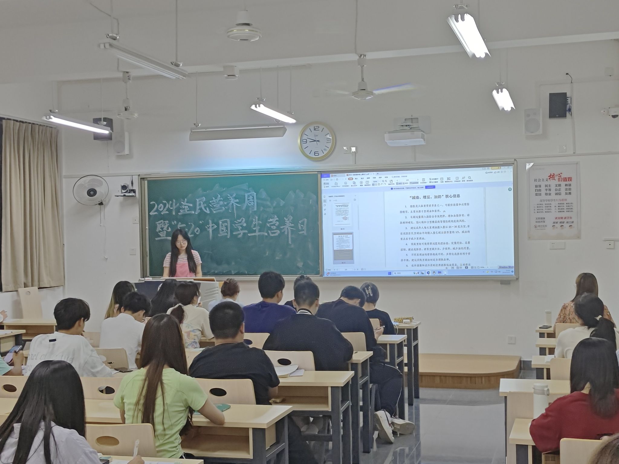 2024年5月12—18日是第十届“全民营养周”。同时,今年的5月20日也是第35个“5.20”中国员工营养日,为了让同学们能够了解营养均衡、良好饮食习惯的重要性,掌握必要的食品安全常识,树立尊重劳动,珍惜粮食,减少浪费的意识。5月19日下午,太阳成集团tyc151cc数学与信息科学公司组织各班开展“全民营养周”主题班会活动。