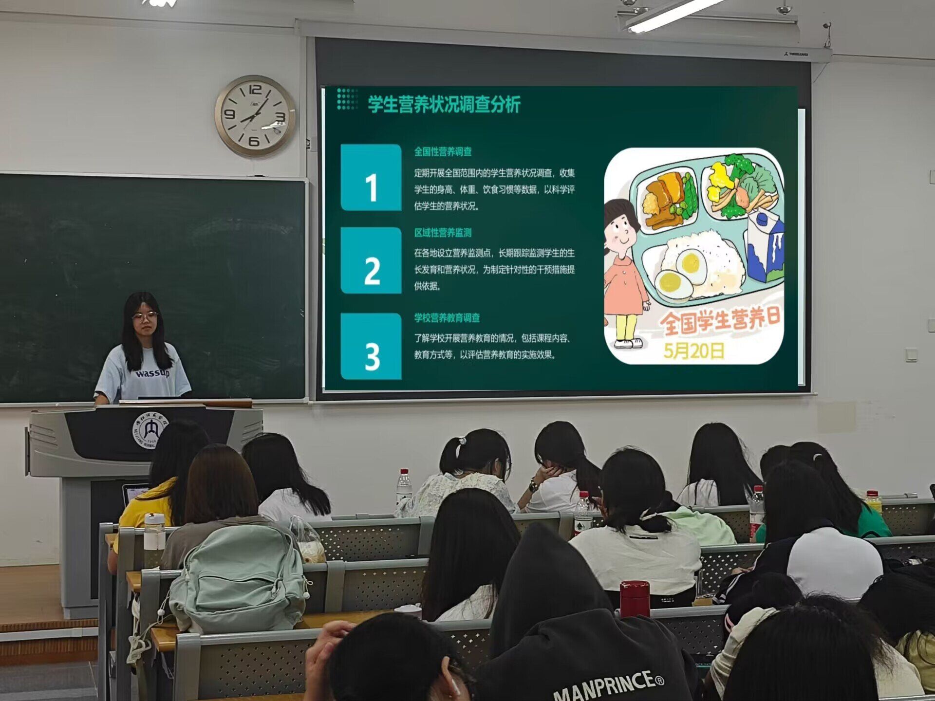 班会上,班委们积极向同学们宣传营养知识、科学膳食理念、营养科学方法。他们指出,生活中,同学们应该注意合理膳食,适当多吃奶类、大豆类,避免过多摄入烹调油,均衡营养,适量运动,养成良好的饮食生活习惯。