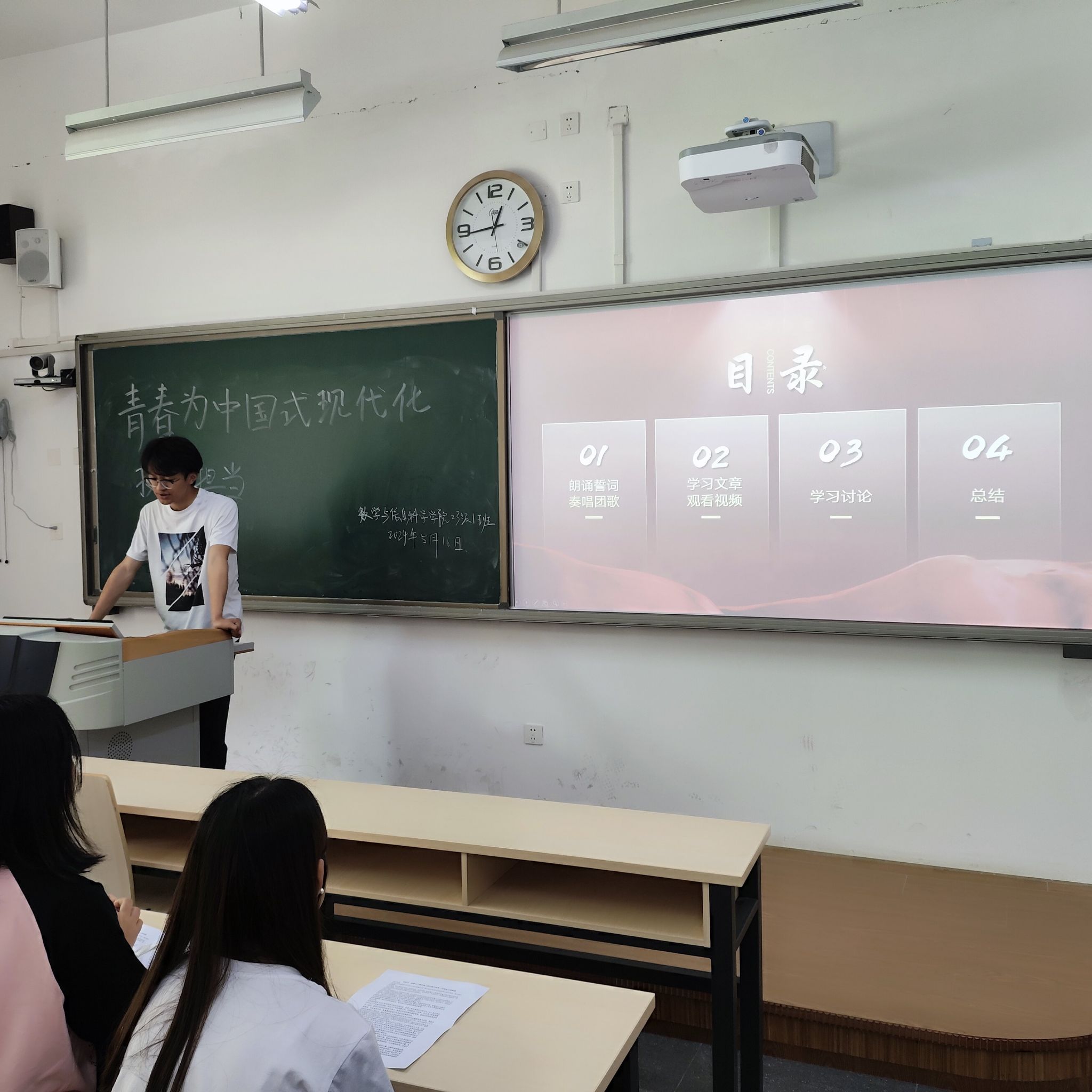 5月11日至5月18日,数学与信息科学公司各团支部在明德楼开展了以“青春为中国式现代化挺膺担当”为主题的团组织生活会。本次组织生活会旨在引导广大团员青年深刻领会和把握中国式现代化的内涵与要求,激发青春热情,积极投身现代化建设,担当起新时代青年的历史使命。