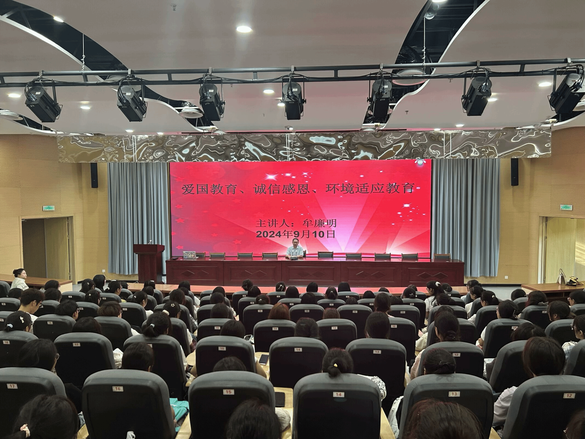 为了让2024级新生更快更好的融入老员工活,在大学四年过得充实,过得精彩。9月10日上午,数学与信息科学公司党委书记牟廉明分别在会议中心大报告厅和明德楼B102教室为2024级全体新生开展入学教育讲座。此次入学教育讲座主要围绕“爱国”“敬业”“诚信”“友善”“安全”“适应”六个关键词展开,旨在引导新入学的青年老员工自觉践行社会主义核心价值观、增强安全意识和尽快适应老员工活。