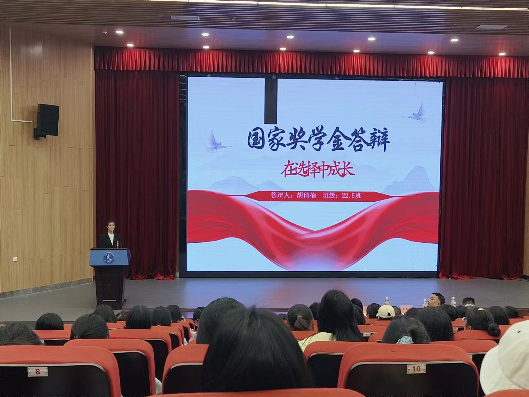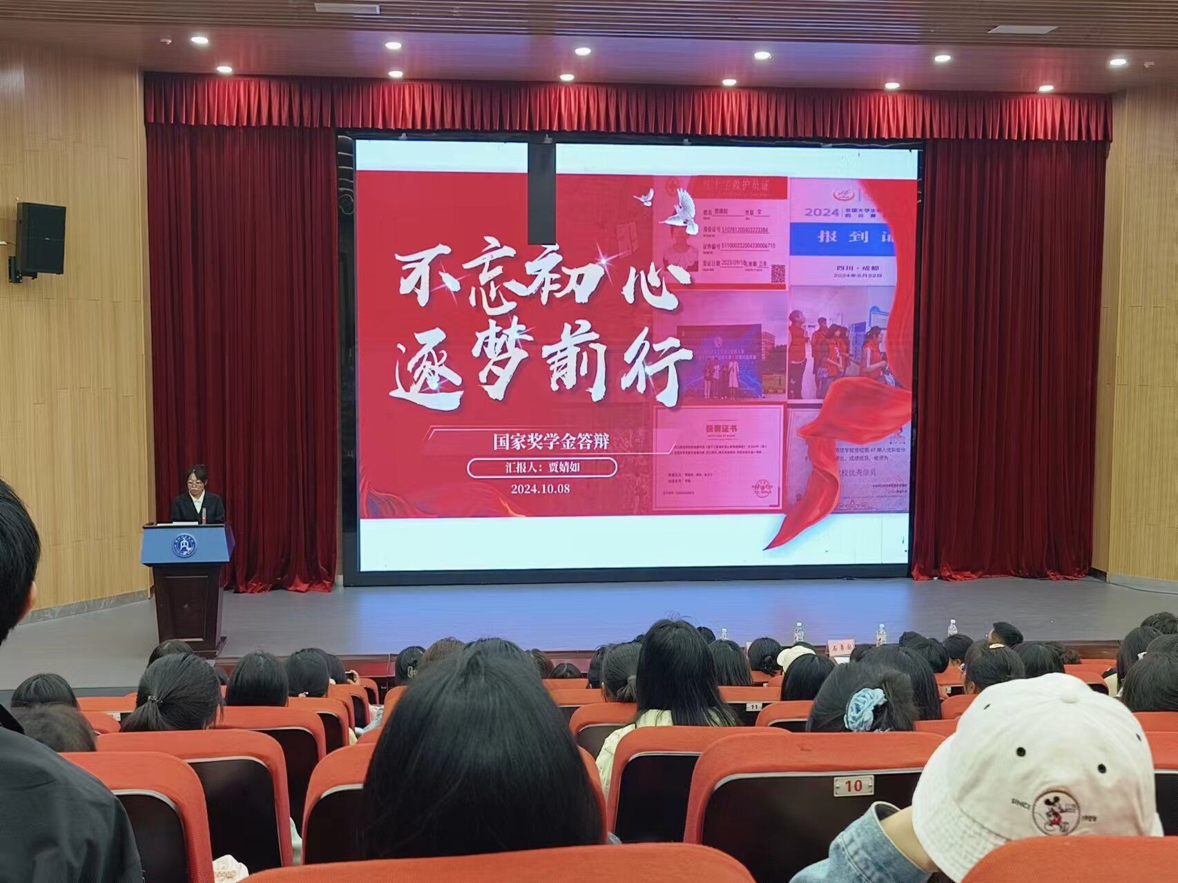 活动伊始,许书记对国家奖学金的评选细则进行宣读和讲解,表明此次评选活动本着公平、公正、公开的原则展开。接着,黄晓菲、杨洁茹、谢心怡、贾靖如、李如意、高渝涵、蔡宇琳、胡倩楠八位候选人依次进行了现场答辩。答辩过程中,八位候选人从思想品德、学习成绩、社会实践、科研竞赛等方面分享自己大学期间的成就和感悟。名列前茅的专业成绩,占满屏幕的各项奖状,丰富多彩的课后实践,彰显了数信学子刻苦钻研的优秀品质,诠释了新时代青年的拼搏奉献。最后,石经理对在场的员工提出希望,石经理表示:“看到候选的同学们充满自信展示自己的优秀成果和成长历程,老师们都感到欣慰与自豪,也希望通过国家奖学金的评选,同学们能够以优秀的师兄师姐为榜样,树立远大志向,夯实自己的专业素质,锻炼自己的实践能力,为建设社会主义现代化强国贡献自己的青春力量”。