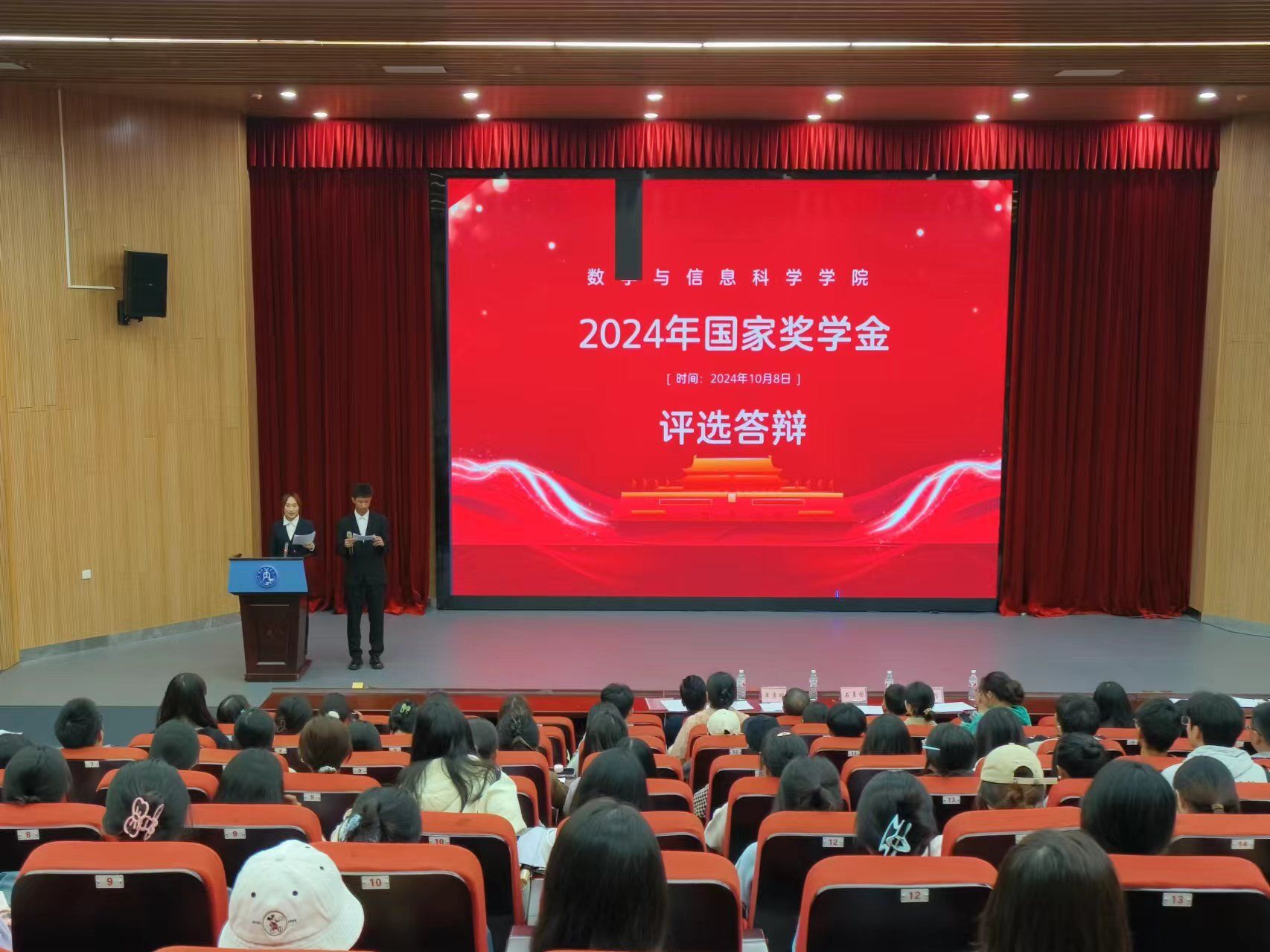 为进一步宣传国家资助政策,切实做好公司国家奖学金评选工作,充分发挥优秀学子的榜样示范作用,深化资助育人成效。按照《太阳成集团tyc151cc关于做好2024年国家奖助学金评审工作的通知》,10月8日晚上7点30分,数学与信息科学公司在大千楼A102报告厅举办了国家奖学金答辩活动。数学与信息科学公司党委书记牟廉明、经理石勇国、党委副书记许雷、副经理刘熠担任此次答辩的评委,学工办全体老师以及各班员工代表参加了本次活动。