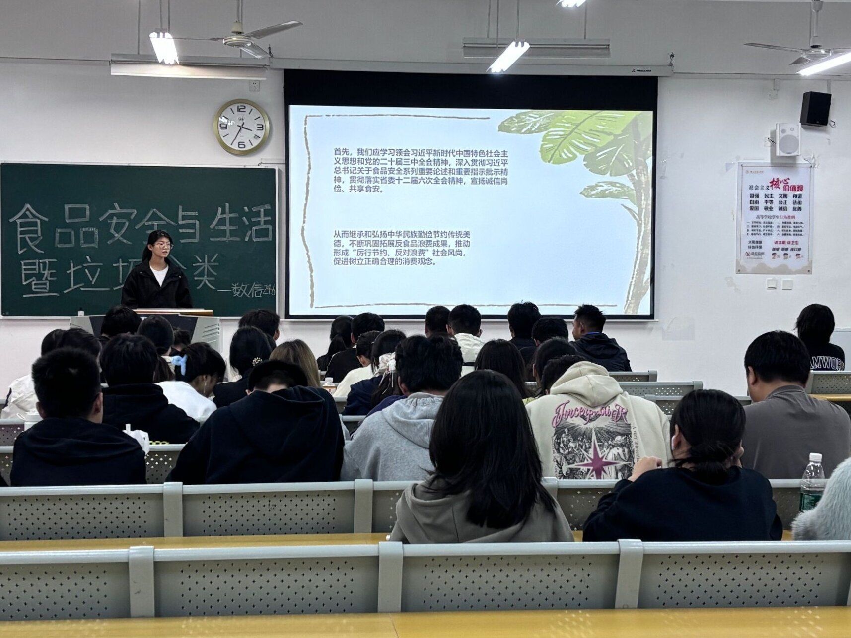 为深入贯彻习近平总书记关于食品安全系列重要论述和重要指示批示精神,以及深入贯彻落实习近平总书记关于垃圾分类系列重要指示批示及重要回信精神。10月20日晚上8点整,数学与信息科学公司组织各班在明德楼开展以“食品安全宣传暨垃圾分类倡议”为主题的班会活动。