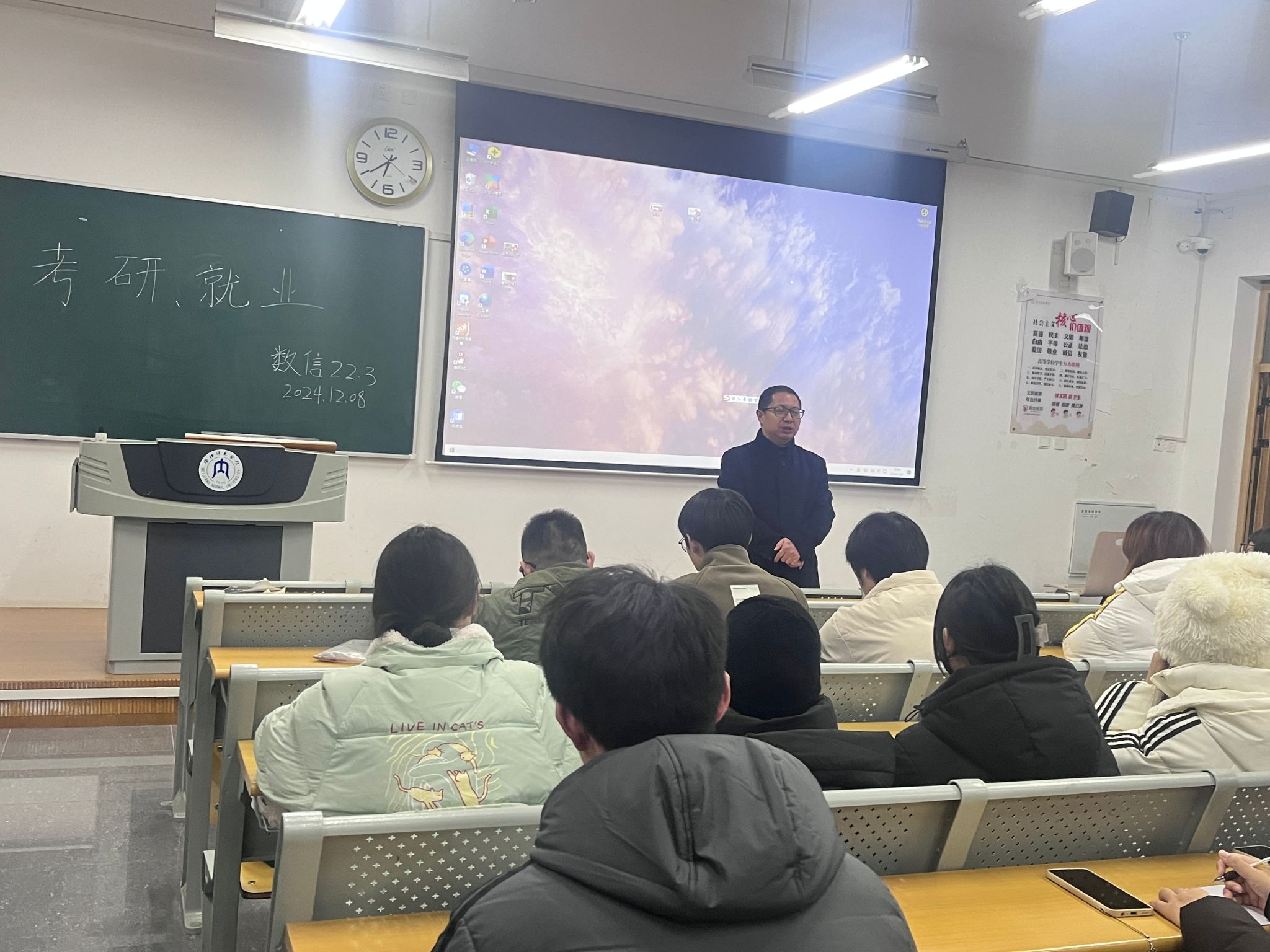 2024年12月8日,数学与信息科学公司党委书记牟廉明教授利用班会时间,走进了2022级3班数学与应用数学专业,与同学们进行了一次面对面的深入交流。