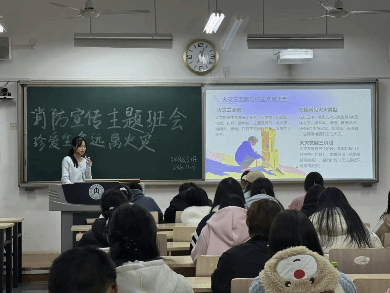 班会中,各班通过理论讲解、案例视频、互动演练等多种方式,重点讲解了火灾成因、宿舍用电安全、消防器材使用及逃生技巧等内容。同学们在模拟灭火、疏散演练等环节中积极参与,掌握了“提、拔、握、压”灭火器操作方法及低姿捂鼻撤离等关键技能。