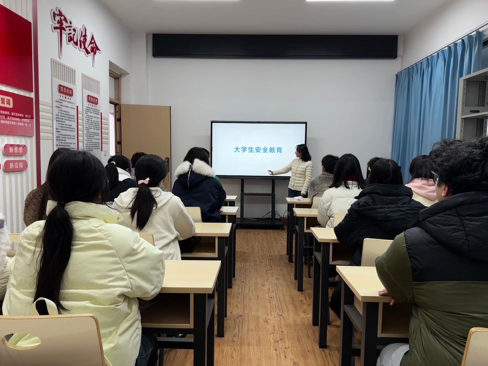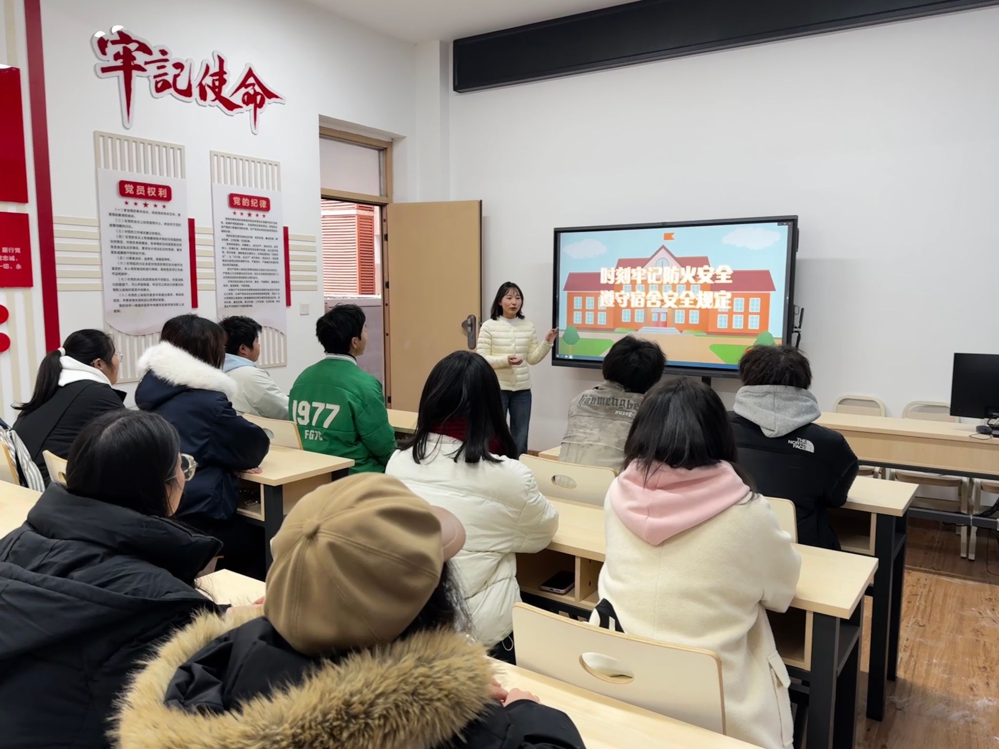 活动结合国家安全月“全民消防、生命至上——安全用火用电”的主题,针对高校寝室常见安全隐患,通过典型案例剖析的方式,重点解读了用电安全、消防安全、财产安全及应急处置等关键内容,详细列举了宿舍内使用大功率违禁电器、私拉乱接电线、堵塞消防通道等行为的危害及相关规定,明确要求寝室代表带头遵守寝室安全管理条例,及时排查并整改宿舍内的安全隐患。为提升教育实效,活动设置了互动答疑环节,对寝室代表提出的“插排使用规范”“小范围火情处置方式”“宿舍防盗注意事项”等问题逐一进行耐心解答,引导大家树立“安全第一、预防为主”的理念。同时,还向寝室代表发放了寝室安全宣传手册,助力其将安全知识传递给每一位室友,推动形成“人人讲安全、事事为安全、时时想安全、处处要安全”的寝室氛围。