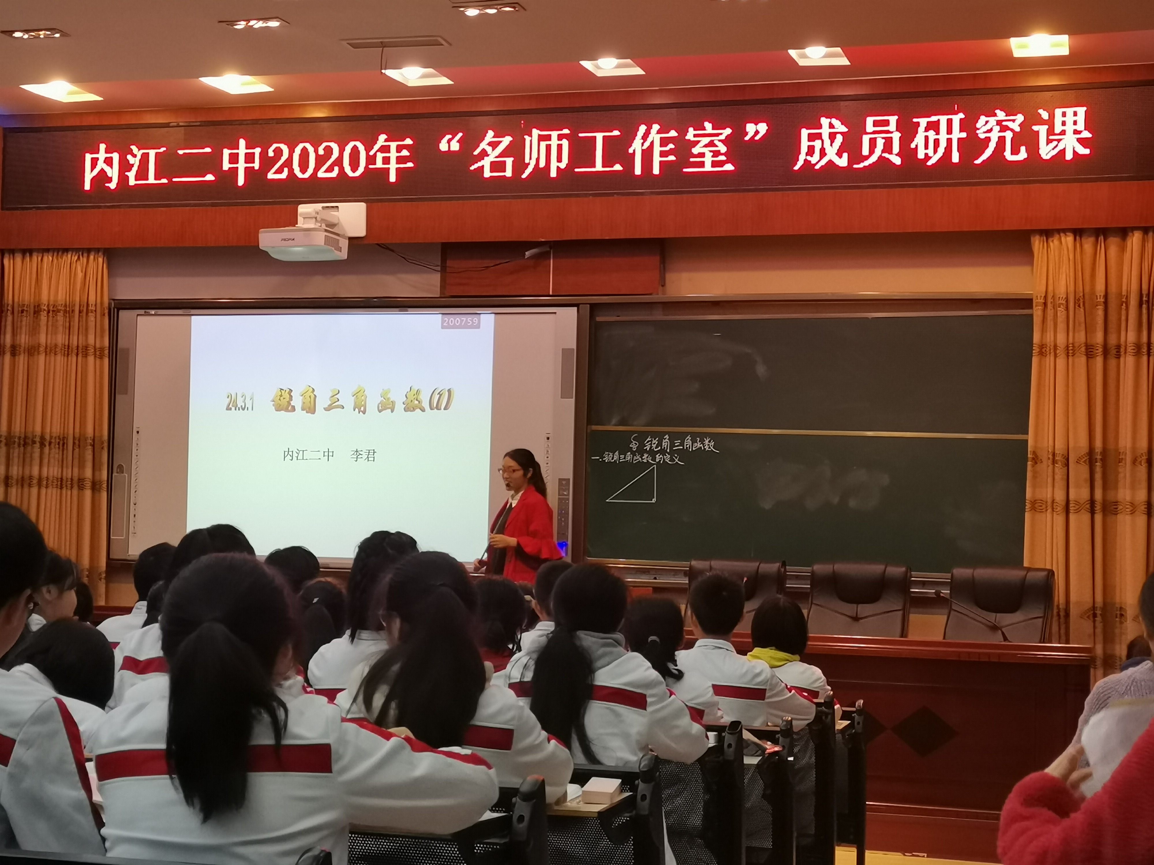 在正式开课前,赵思林教授首先对同学们的观摩提出了要求,在观摩过程中要做好笔记,希望同学们学会欣赏,“会欣赏才会分享”。此次见习课程是由李君老师准备的初三年级的新知识——锐角三角函数教学课程,李君老师作为内江二中“名师工作室”的成员,在上课过程中自信幽默,新旧知识融会贯通,时刻注意同学们的学习进度,多角度、多方法启发同学们的思维,激发同学们的学习兴趣。课堂上同学们学习兴趣浓厚,积极与老师互动,主动学习思考,营造了一个轻松愉快的课堂氛围。李君老师讲课结束后,现场迸发出热烈的掌声,同学们向老师深深地鞠躬致谢。