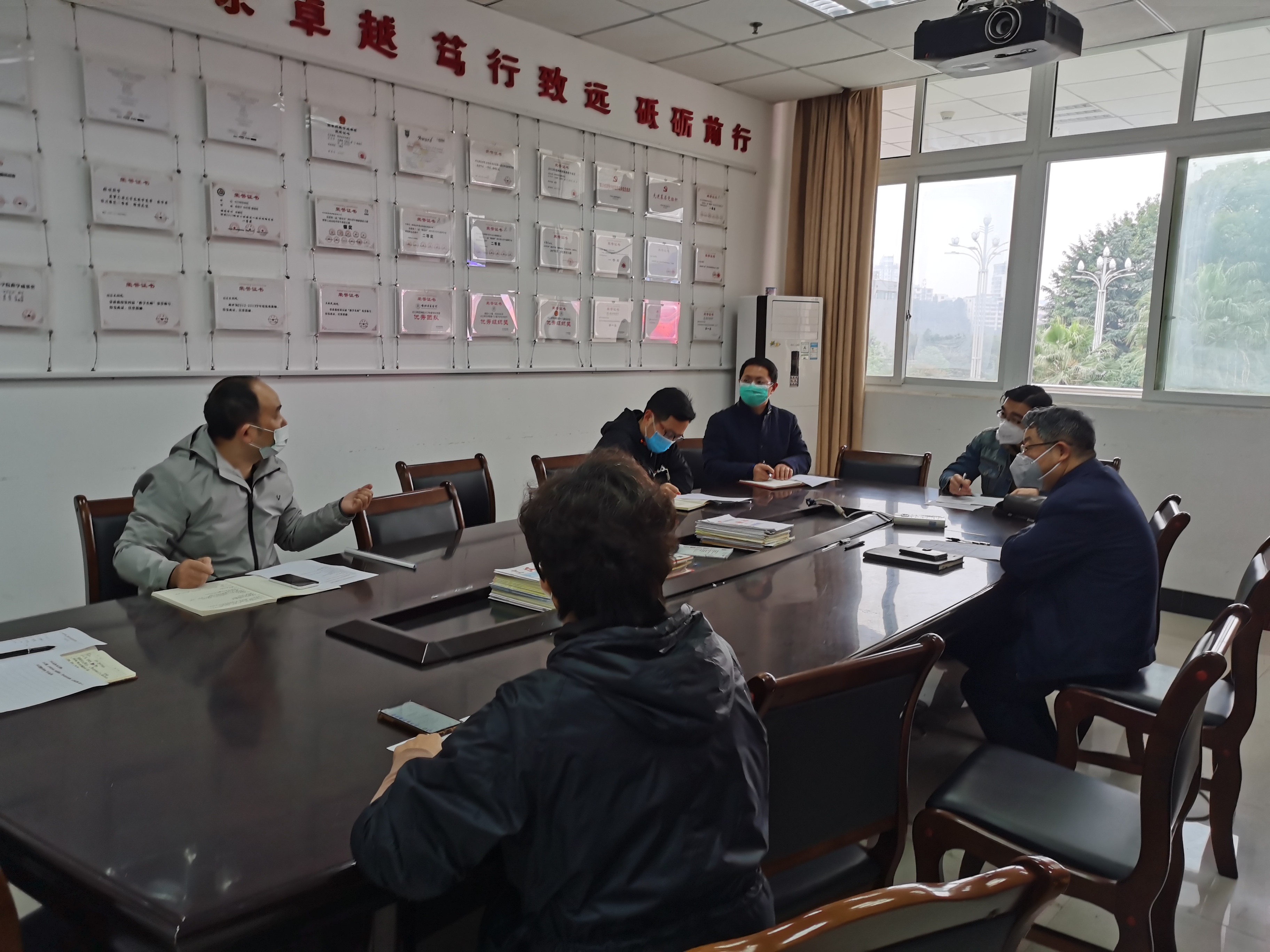 2020年3月13日上午,数学与信息科学公司教学领导小组组织专业负责人、教研室主任、教学办召开关于疫情防控期间教学工作讨论会议。参加本次会议的有经理彭家寅,书记唐再锋,副经理牟廉明、石勇国,专业负责人许雷,教研室主任廖为、余小芬,教学办徐小琴。