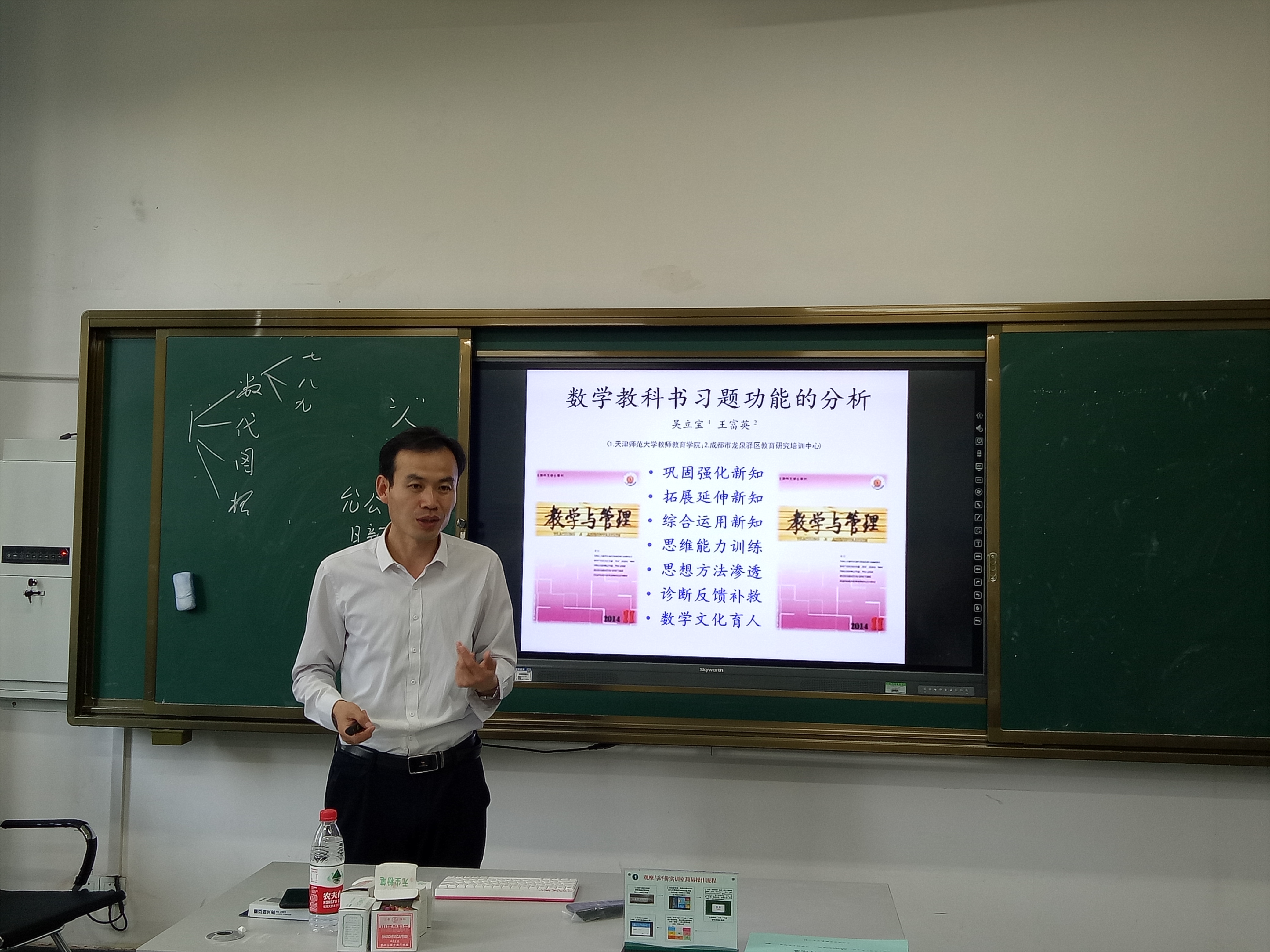 吴立宝教授讲授了教学理念、应对策略、中国员工核心素养在教学中的培养等,提出要研究初中数学教材首先要有三个理解,并对教科书的隐性结构进行了分析。提出钻研教材的多个视角,并提出把握教材的宏观、中观、微观的三个层次,以实例进行了讲解说明。