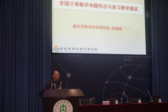 2019年3月16日上午,重庆市教科院,重庆市学术与技术带头人,正高级教师张晓斌老师作了一场题关于适应新高考数学全国卷第二轮复习的重庆经验的大会报告。本次报告由自贡市教科所教研员张德荣老师主持。