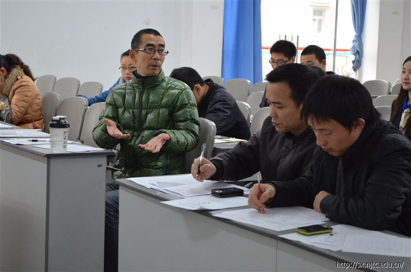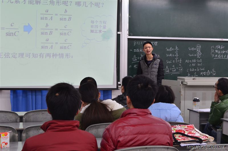 首先上场的一号选手彭大彬讲的《正弦定理》,脉络清晰,讲解耐心细致,为整个讲课比赛开了个好头。后面的选手也不甘示弱,二号选手刘强讲的《等差数列前n项求和》,引导自然、证明详细。三号选手张龙讲的《平面》,空间想象灵活、讲解引人入胜......各位选手讲课各有千秋,互不相让。在这三尺讲台上,各显教师风采。评委们打分也十分严格,对每位选手的模拟讲课都进行了细致的点评,从是否有创新点、理念是否清楚、是否立足于教材三个方面进行评审,并提出不足和改进意见。