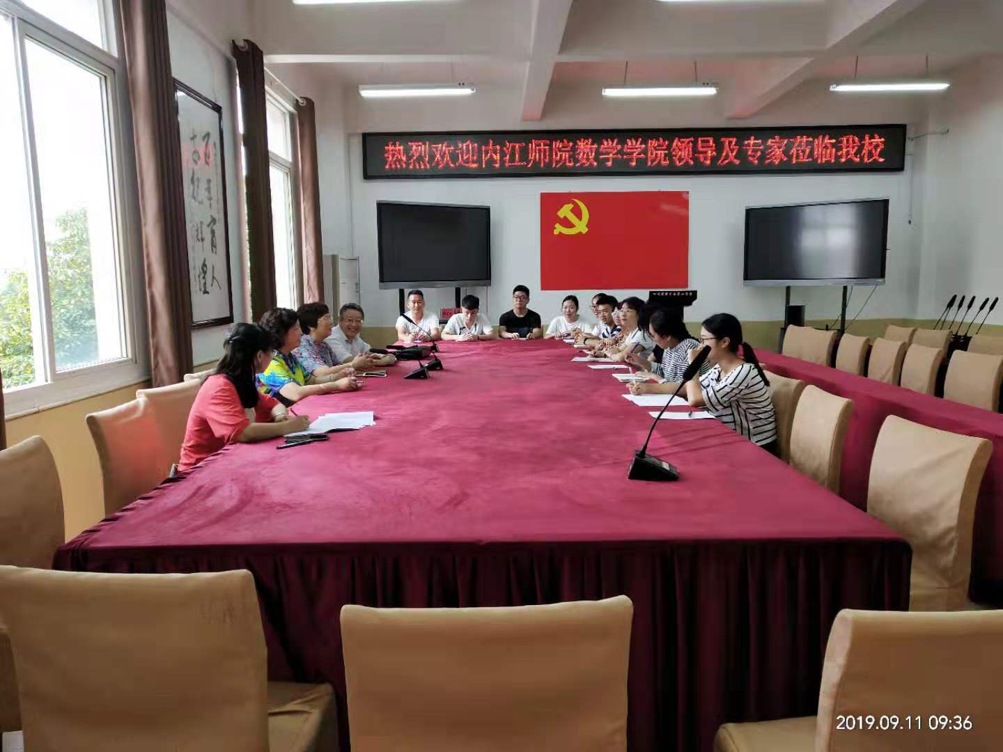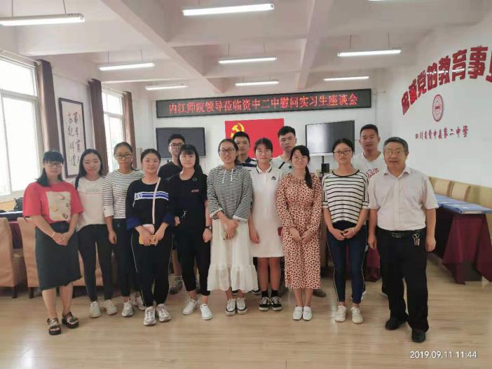 9月11日上午9:30,公司经理彭家寅,数学教育教研室教师余小芬到资中县检查、指导2016级员工实习工作,并在资中二中会议室组织开展了实习交流座谈会。