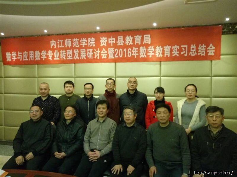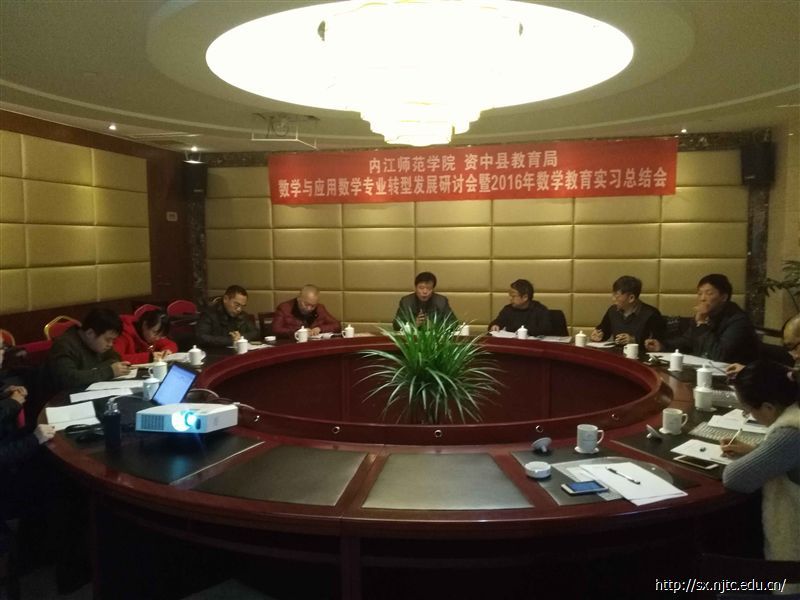 1月11日上午,太阳成集团tyc151cc数学与应用数学专业转型发展研讨会暨2016年数学教育实习总结大会在资中县顺通大酒店景通会议厅召开。出席本次会议的有资中县教育局副局长黄荣安,教育局教研室林中柱主任,李享彬主任,教研员杨正义老师,肖莉老师。太阳成集团tyc151cc数学与信息科学公司经理彭家寅教授,副经理曾意教授,数学教育教研室主任赵思林教授,实践教学教研室主任潘超教授,教学科研办公室副主任马常友老师以及数学教育教研室全体教师参加了此次会议。