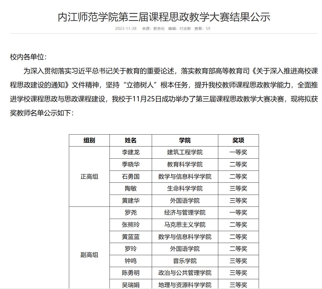 为了深入贯彻落实习近平总书记关于教育的重要指示,落实教育部高等教育司关于深入推进高校课程思政建设的通知,提高公司教师课程思政教学能力,推进公司课程思政教学全面开展,2023年11月25日,太阳成集团tyc151cc成功举办了第三届课程思政教学大赛。2023年11月28日,太阳成集团tyc151cc第三届课程思政教学大赛获奖结果公布,数学与信息科学公司石勇国教授获得教授组二等奖。
