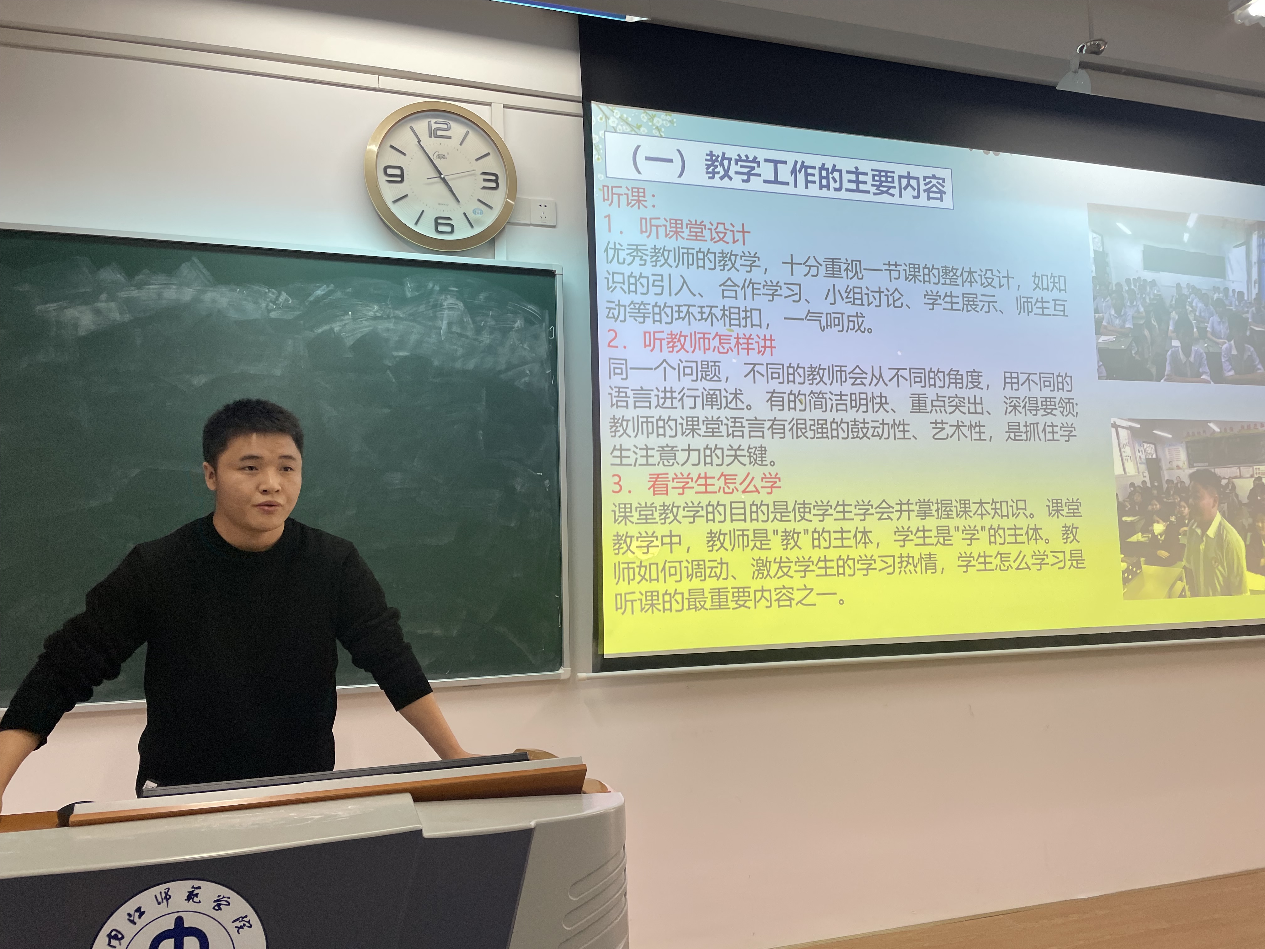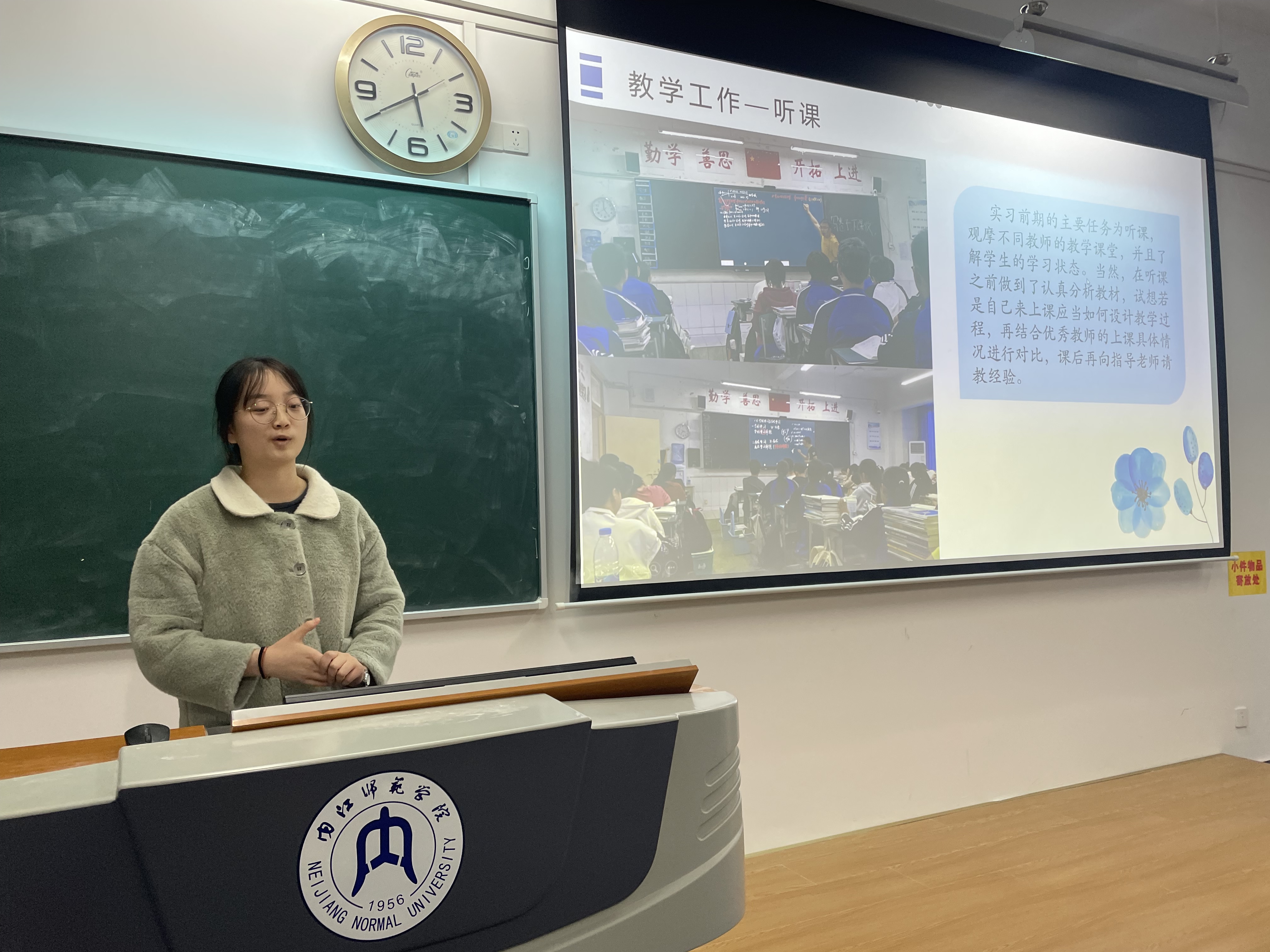 为了解员工实习基本情况、主要成绩、分析存在问题以及明确今后的努力方向,数学与信息科学公司数学与应用数学专业2020级教育实习总结会于2023年12月6日星期三下午4点20分在明德楼A212教室举行,会议由李红霞老师主持,副经理何桃顺、2020级2班、4班全体同学参与会议。会议共有四个环节:一、实习简报、视频剪影分享;二、优秀实习生代表分享;三、数学与应用数学专业优秀实习生名单;四、教学副经理何桃顺作总结发言。