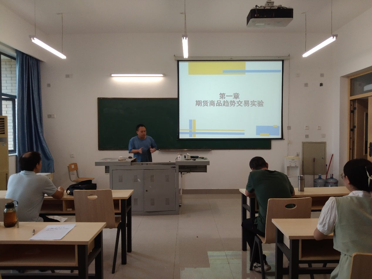 本学期,喻啼鸣博士将担任专业实践课《期货投资分析实践》的主讲教师,首先从该门课程在人才培养方案中的作用谈起,介绍了期货投资实务的发展历程、当前状况与发展趋势,阐述了课程中主要的教学设计思路与实现课程目标的措施。喻啼鸣博士就教材的第一章期货商品交易实验基础进行了试讲。