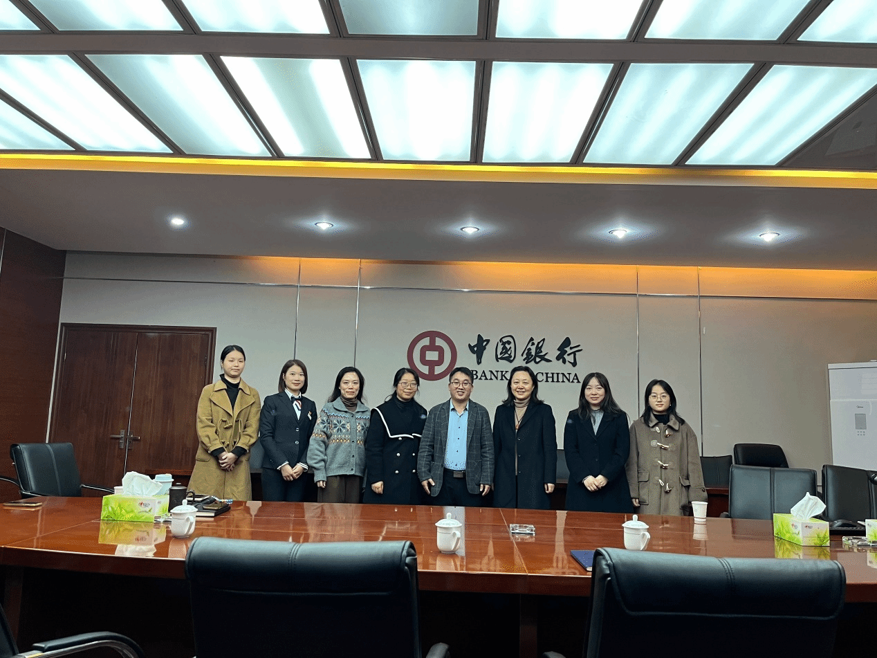 2024年11月19日,金融数学教研室成员在何桃顺副经理带领下,到中国银行内江分行对2021级5班金融数学专业实习进行实习检查。