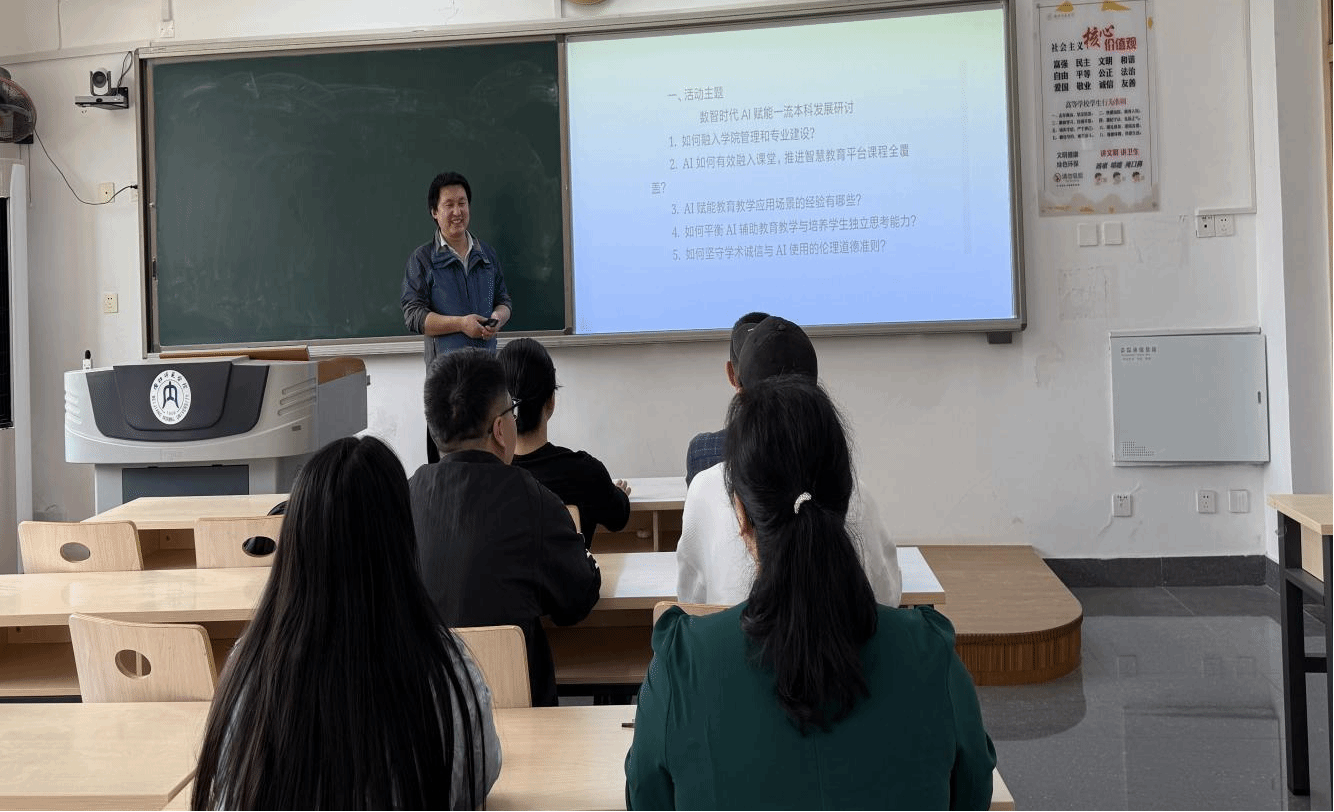 2025年4月11日上午,基础数学教研室在明德楼B103教室召开"AI辅助教学"专题研讨会,全体教研室教师参加。