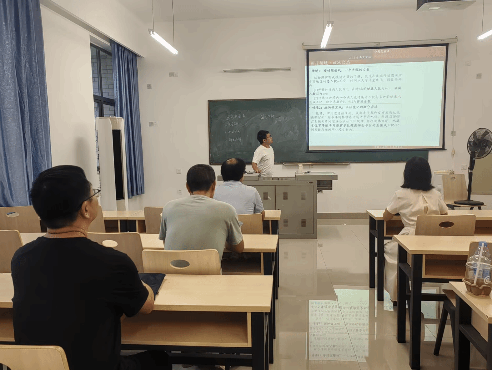 9 月 5 日下午 16:30,应用数学教研室在格致楼 411 教室顺利召开 2025 至 2026 学年第一学期第一次主题教研活动。本次活动聚焦新开课程教学质量把控,特安排王百顺老师进行《常微分方程》课程的试讲展示,教研室全体授课教师参与了本次教研。试讲环节中,王百顺老师以 “变量分离方程” 为课题,系统展开教学演示,为后续课程正式授课奠定基础。