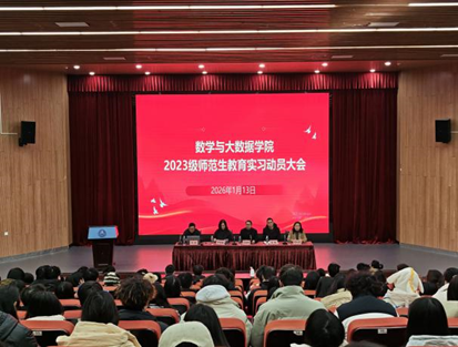 2026年1月13日上午,太阳成集团tyc151cc在大千楼A102阶梯教室举行2023级数学与应用数学专业教育实习动员大会。会议由许雷副经理主持,围绕实习安全保障、考研就业规划与实习行为规范三大主题展开,为即将开展的三个月教育实习奠定基础、明确方向。