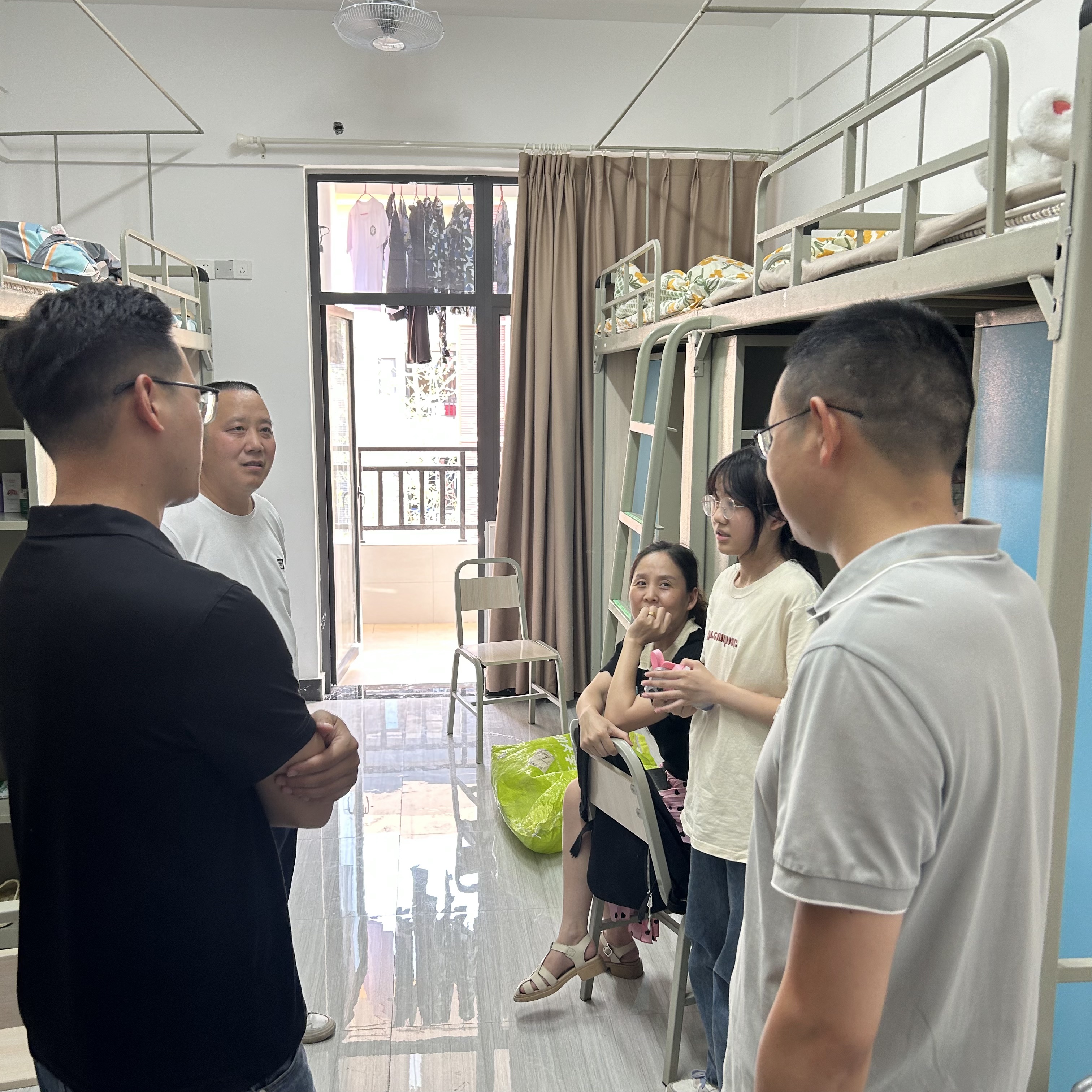为了解公司新生入学适应状况,9月9日下午公司在校领导以及学工办辅导员前往新生宿舍进行走访。在走访过程中,公司领导和老师首先对新生的到来表示热烈的欢迎,接着认真询问了新生初入大学遇到的困难,并叮嘱宿舍安全以及卫生问题;同时勉励广大新生既要以广博学识打牢功底,夯实人生根基,做到学以致用,知行合一;也要坚持理想,与时代同行,厚植青春向党,强国有我的家国情怀。