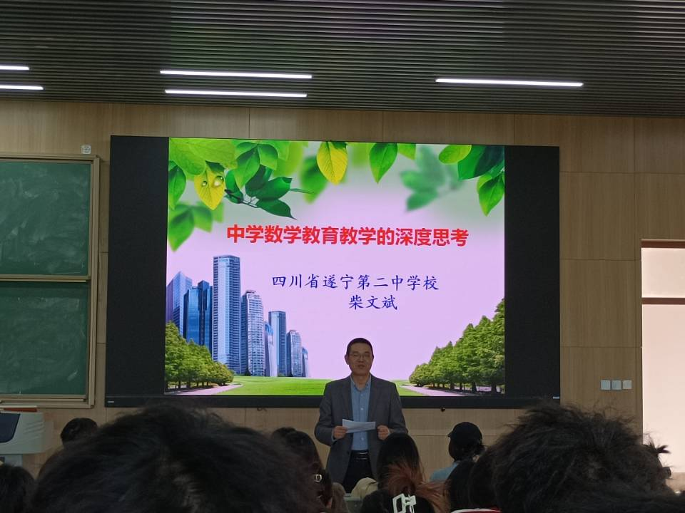 2023年10月20日下午2点整,遂宁市第二中学党委书记、中学数学正高级教师柴文斌在明德楼B区109为公司学子做了一场题为《中学数学公司产品的深度思考》专题讲座。本次讲座由数学与信息科学公司副经理刘熠教授主持。赵思林教授、熊露老师及2021级2班全体员工参加了此次讲座。