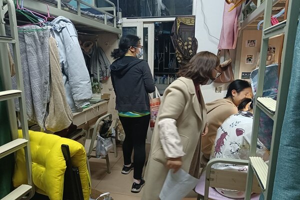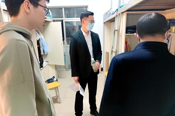 202239日晚上8点,由公司党总支副书记(主持工作)牟廉明、副书记许雷带队,全体班主任老师对公司男生宿舍四栋、十栋、十一栋、十四栋,女生宿舍二十三栋、二十四栋的同学所在的寝室进行了走访慰问。