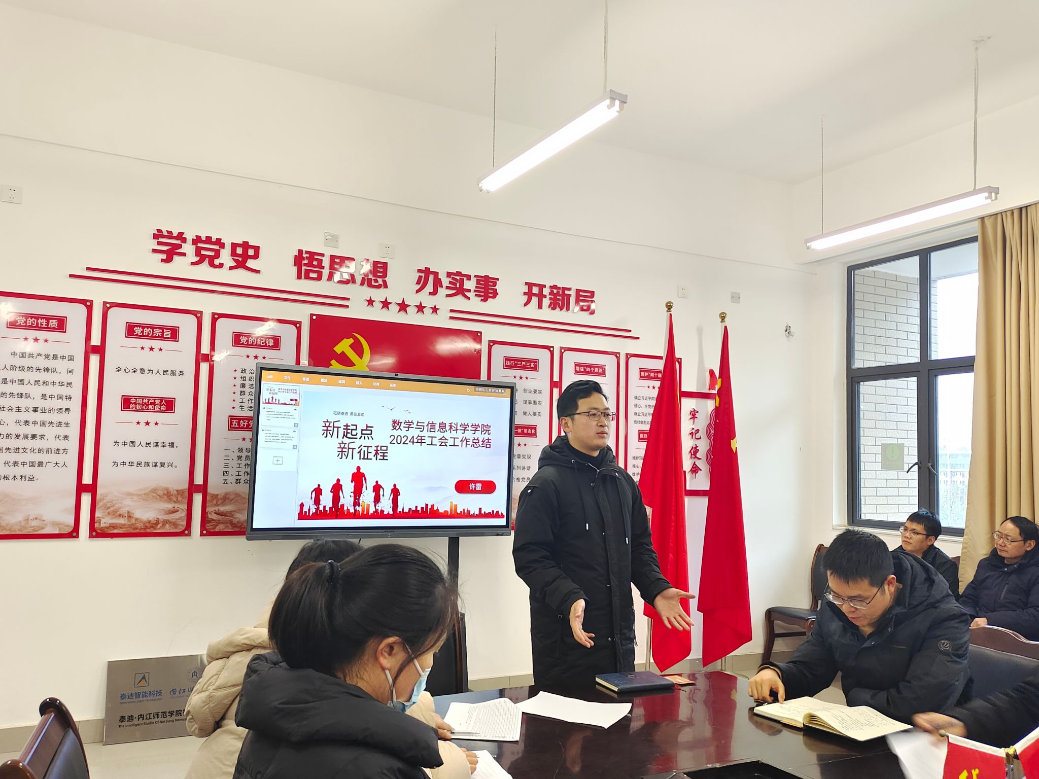 2024年12月9日14点30分,数学与信息科学公司工会年度总结大会在格致楼424会议室如期举行。此次大会由公司工会主席许雷主持,公司全体教职工齐聚一堂,共同回顾并庆祝过去一年里公司工会在促进教职工队伍建设、提升教学质量、增进员工福利等方面取得的显著成就。