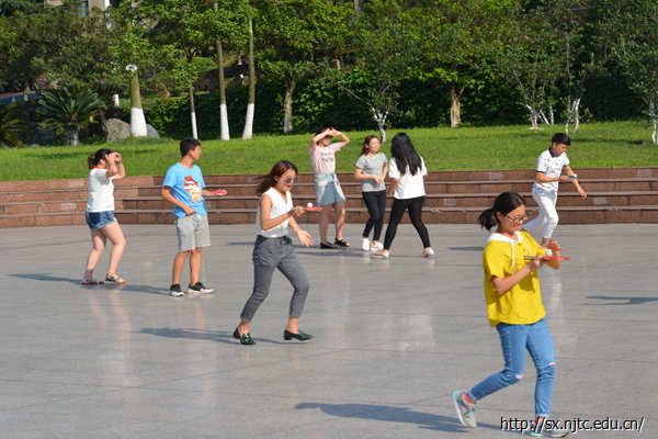 与室内活动不同,户外的团体活动是一种全新的体验方式,本次活动本着“友谊第一,比赛第二”的精神,使同学们互相了解、互相认识,弘扬团队精神。所有同学被分为12组,分别进行踩气球、乒乓接力、发呆30秒三项活动。在乒乓接力活动中,每组派出6个人,队员站立式起跑,将乒乓拍上的乒乓球托住传递给下一个人。活动中笑点连连,引得同学们哈哈大笑,现场气氛十分活跃。天一广场充满了同学们的欢声笑语。纵使烈日炎炎,同学们都积极参与活动,热情似火。各组同学的表现都十分优异,并且都赢得了精美的小礼品。