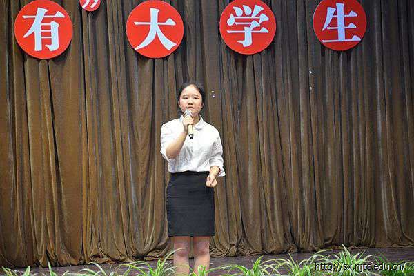 比赛尾声,随着大幕的徐徐拉开,由专业老师和同学们组成的一支演讲团队呈现在观众眼前。她们优雅的台风、默契的配合为我们带来了一场视觉与听觉的盛宴,让同学们在比赛的紧张气氛之余能欣赏到不一样的演讲表演。