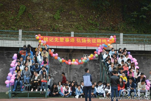 随后谢金蓉、左鑫杰和刘籽含同学精彩的歌曲演唱《漂洋过海来看你》。接着董小平和彭磊同学又为我们带来了幽默的相声《吹牛》,整个操场都充满了欢笑声,将我们的生活会推向高潮,而接下来李晓静和杨振同学的舞蹈串烧更是将同学们的热情推向高峰。最后,还有一首手语歌曲《仰望星空》带给大家,让爱传递,最后一首优美的短句诗《长征精神》为我们的节目画上了完美的句点。当然,当然还有考验同学之间的凝聚力的游戏,“五人六足”的游戏开始了,同学们在游戏中领会了团结与坚持的意义,游戏结束,生活会接近尾声,主持人对本次生活会作出总结并宣告活动结束。