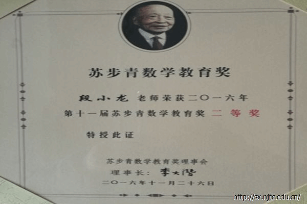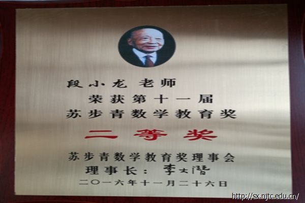 2016年11月26日,第十一届“苏步青数学教育奖” 颁奖活动在浙江省温州市平阳县腾蛟镇的苏步青励志教育馆举行。来自全国21个省、市、自治区的25名中学数学教师、教研员齐聚苏步青先生故乡,领取代表我国中学数学教育最高荣誉的奖项。本届评选产生一等奖5名,二等奖20名。员工段小龙荣获二等奖。